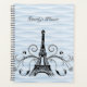 Stay organised with appointments and important dates with a Blue Eiffel Tower Flourish Planner. Planner design features the Eiffel Tower adorned with elegant flourishes against a wavy blue background. Additional colours available with this design as well. This item may be personalised with a name, monogram, or favourite saying of your choosing. Please contact me if you need assistance with personalisation.