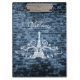 This Blue Eiffel Tower Grunge Clipboard features a design features a grungy brick background in blue with the Eiffel Tower adorned with elegant flourishes and space to personalise with your name. Additional colours available with this design as well. This item may be personalised with a name, monogram, or favourite saying of your choosing. Please contact me if you need assistance with personalisation.