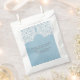 Simple and sophisticated Elegant Lace Wedding Favour Bags featuring a white lace doily motif on a light blue faux vintage paper background. These classic and stylish bags are perfect for a rustic wedding. Easy to customise with your wedding details. Click "Customise It" to find more personalisation options.