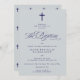 Celebrate a sacred milestone with this beautifully designed baptism invitation that embodies tradition and elegance. Set on a soft blue background, a Dark Navy Blue cross crowns the design and highlights the heartfelt message