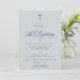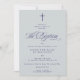 Celebrate a sacred milestone with this beautifully designed baptism invitation that embodies tradition and elegance. Set on a soft blue background, a Dark Navy Blue cross crowns the design and highlights the heartfelt message