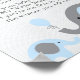 Display our blue and grey elephant themed baby shower game sign to let guests know that you're playing the popular "My Water Broke"" game. To play the game, buy some plastic babies that will fit in your ice cube trays. Freeze the babies in ice and then put the ice cubes on display at the shower. Have guests each add one frozen baby ice cube to their drink - whoever has their ice cube melt and release the baby yells "My Water Broke!" and they win.