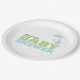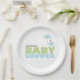 Sweet and whimsical baby shower design features a cute elephant holding an umbrella.