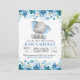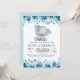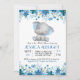Blue elephant floral invitation for a baby boy shower or sprinkle.