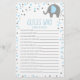 Blue Elephant Guess Who Baby Shower Game Stationery
