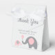 Use our pink and grey elephant themed baby shower favour boxes with ribbon to package your shower favours in a cute and easy way.