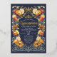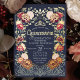 Celebrate your Quinceañera in an enchanted garden! This invitation features a lush frame of pink and red florals with real foil accents against a blue background, adding a touch of magic to your special day. Personalise it to meet your needs.
