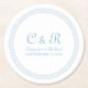 Simple and elegant Encircled Round Wedding Paper Coasters featuring a geometric circle border in blue. This chic and modern wedding design is perfect for setting the tone for a simple and sophisticated wedding. Easy to customise, simply add your wedding details in the text fields provided. Click "Customise It" to find more personalisation options.