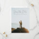 Elegant, boho save the date card features a modern dusty blue lines. Personalise with your wedding details with the easy to edit template featuring a romantic script font and modern sans serif font. Replace the full photo on the front with your own. Then, replace the back photo with your own and update your wedding website URL.