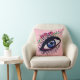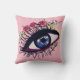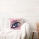Blue eye & flowers drawing, custom color background on cushion interior.