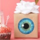 © Sunny Mars Designs. Blue Eye Iris Eyeball Round Stickers – Cool, fun custom printed blue eyeball round stickers with a trendy, modern, beautiful, unique, freaky, creepy, weird and twisted graphic illustration of a striking big blue realistic eyeball iris of an eye. Other colour eyeball designs are also available in store.