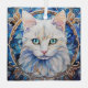 Blue Eye White Cat Stained Glass Tree Decoration