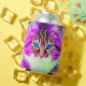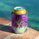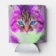 Domestic cat brightly coloured with purples and pinks. Eyes digitally coloured blue for an intriguing icy stare.