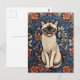 Blue Eyed Siamese Cat William Morris Inspired Postcard