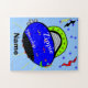 Blue-Eyed Smiling Blue Green Fish Spaceship Puzzle