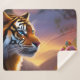 Blue Eyed Tiger and Pink Flowers Sherpa Blanket