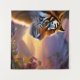 Blue Eyed Tiger and Pink Flowers Tapestry