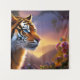 Gorgeous Blue Eyed Tiger Mountainous landscape and pink flowers
