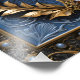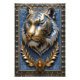 This 3D artwork mimics the craftsmanship of a goldsmith metalworker specialising in gold, silver, and other precious metals. It features a 3D tiger's portrait in metallic gold and silver tones, set against a background of intricately detailed baroque-style leaves. The artwork is printed to capture the rich textures visual effects of the metallic elements.