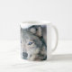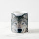This product featuring a gray wolf with brilliant blue eyes is great as a gift