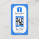 This facebook review card has the facebook trademark blue framing the front side and a solid blue back. The front has the facebook logo at the top, your business name, a review us call to action message and a QR code to link your facebook review URL. Below that you have a scan me button and a personalised thank you message at the bottom. On the backside you have your logo at the top and below it all your business information. At the bottom there is a message to connect with you on facebook with your facebook page username. This is a clean and simple card that has everything you need! It's a review card and business card in one. If you need help with this template please send me a message and I will gladly assist you. Thank you, Sandy