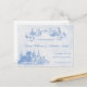 Fairytale wedding save the date postcards with a storybook castle and banner on a vintage parchment background. Perfect for your fairytale princess wedding! Beautiful blue image and text on a light blue background. Also available in other colour schemes. Please contact pmcustomweddings@hotmail.com for custom colours.
