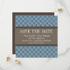 Trendy and chic Fancy Lattice Save the Date Announcements featuring a stylish circle and diamond studded pattern over a vibrant dusk blue background with a broad two-toned brown border. This elegant save the date invitation is perfect for announcing your modern wedding. Easy to customise, simply add your wedding details in the text fields provided. Click "Customise It" to find more personalisation options.