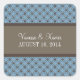 Trendy and chic Fancy Lattice Wedding Stickers featuring a stylish circle and diamond studded pattern over a vibrant dusk blue background with a broad two-toned brown border. These elegant wedding stickers are perfect for a modern wedding. Easy to customise, simply add your wedding details in the text fields provided. Click "Customise It" to find more personalisation options.