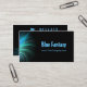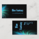 A stylish blue green fractal fans across a classical black background with complimenting blue text. The front is in the horizonal perspective, and includes company name and web address. The back of the card is in the vertical, with full business contact details. This business card is fully customisable to your needs.
