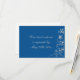 Beautiful faux diamond swirl images create an elegant border on the right side of this wedding response card. The swirls form leaf and heart images in glittery silver with your text in silver at the middle. The back of the invitation is white to make it easy for your respondent to mark, with the custom text in matching blue. *Clip art used in this design is copyrighted by Encore Software, Inc., which permits use to its licensors. All rights reserved. Please note - the image is printed, and does not contain glitter.