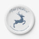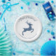Blue Faux Glitter Look Jumping Deer With Text Paper Plate