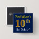 Blue, Faux Gold 10th Birthday, With Custom Name 15 Cm Square Badge