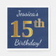 Blue, Faux Gold 15th Birthday + Custom Name Napkin