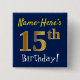Blue, Faux Gold 15th Birthday, With Custom Name 15 Cm Square Badge