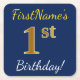 Blue, Faux Gold 1st Birthday + Custom Name Square Paper Coaster