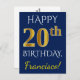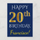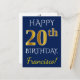 Blue, Faux Gold 20th Birthday + Custom Name Postcard