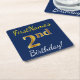 Blue, Faux Gold 2nd Birthday + Custom Name Square Paper Coaster