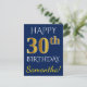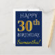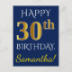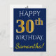Blue, Faux Gold 30th Birthday + Custom Name Postcard