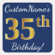 Blue, Faux Gold 35th Birthday + Custom Name Square Sticker