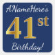 Blue, Faux Gold 41st Birthday + Custom Name Square Sticker