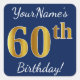 Blue, Faux Gold 60th Birthday + Custom Name Square Sticker