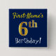 Blue, Faux Gold 6th Birthday, With Custom Name 15 Cm Square Badge