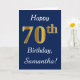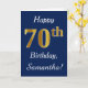 Blue, Faux Gold 70th Birthday + Custom Name Card