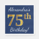 Blue, Faux Gold 75th Birthday + Custom Name Napkin