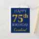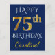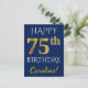 Blue, Faux Gold 75th Birthday + Custom Name Postcard