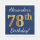 Blue, Faux Gold 78th Birthday + Custom Name Napkin
