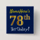 Blue, Faux Gold 78th Birthday, With Custom Name 15 Cm Square Badge