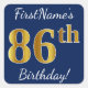 Blue, Faux Gold 86th Birthday + Custom Name Square Sticker