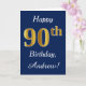 Blue, Faux Gold 90th Birthday + Custom Name Card