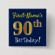 Blue, Faux Gold 90th Birthday, With Custom Name 15 Cm Square Badge